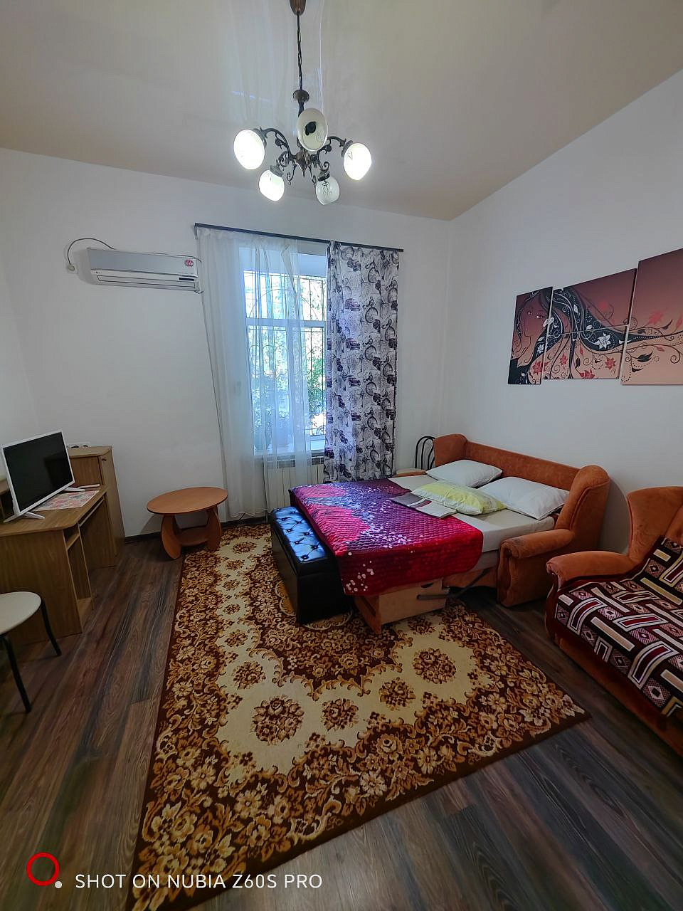 В общем дворе частного одноэтажного дома предлагаем комфортабельный полуторный номер на первом этаже для 4 гостей. В номере есть двуспальная кровать диван,2-х.спальное место у входа на кухне, санузел, телевизор и кондиционер. Также предусмотрен беседка для отдыха.