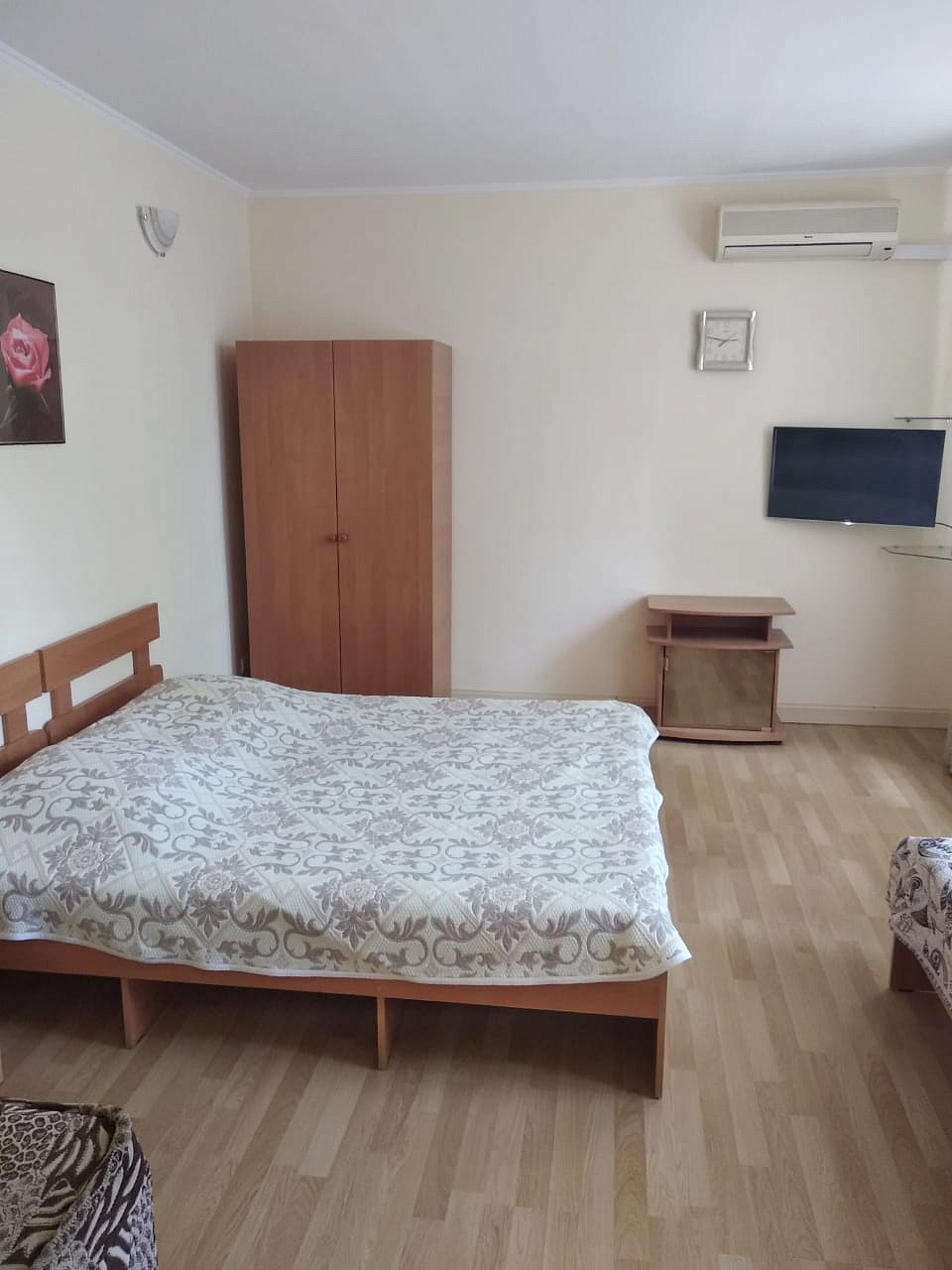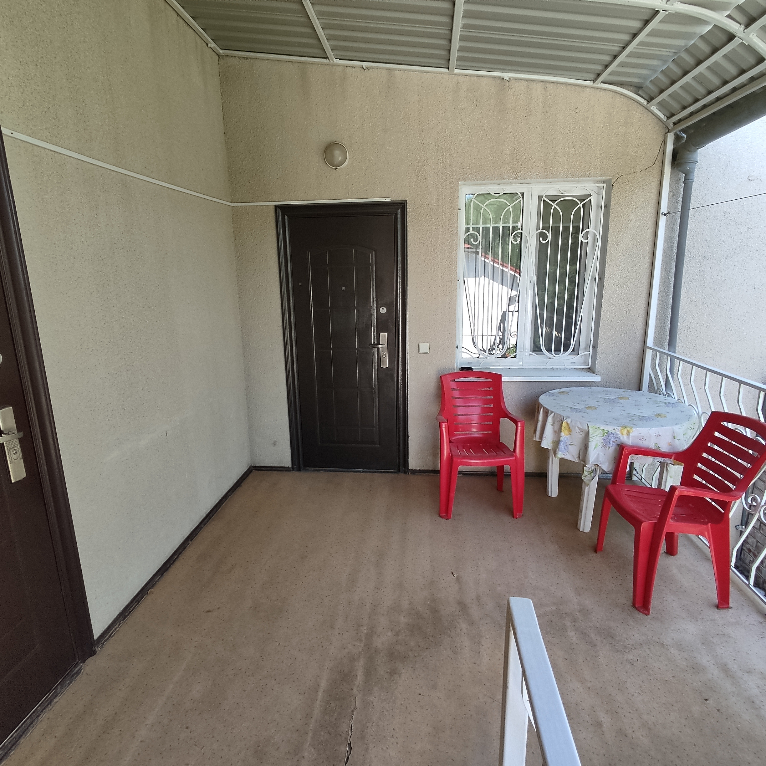 Однокомнатный номер в частном доме на втором этаже. Все удобства. Есть стиральная машинка общего пользования в бытовой комнате. Перед номером есть зона отдыха на лестничной площадке .